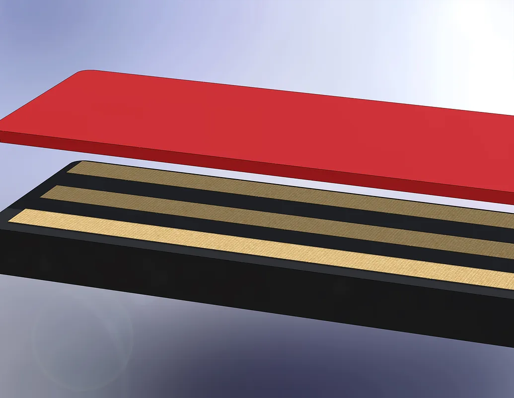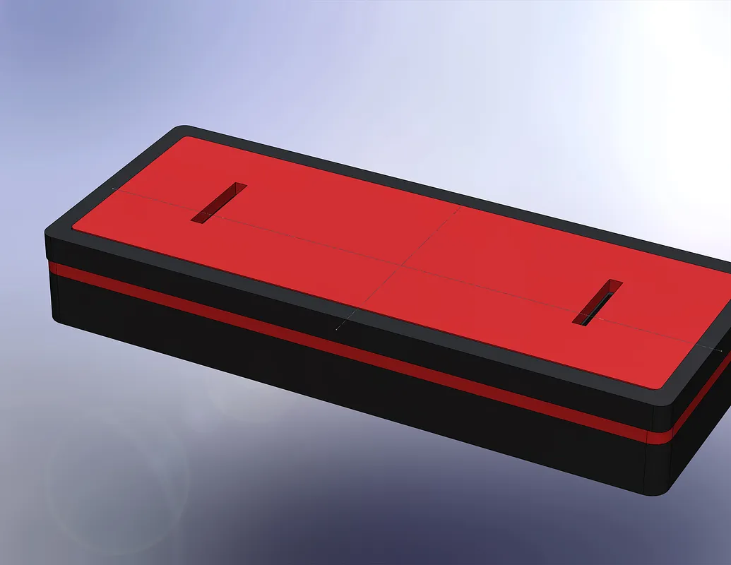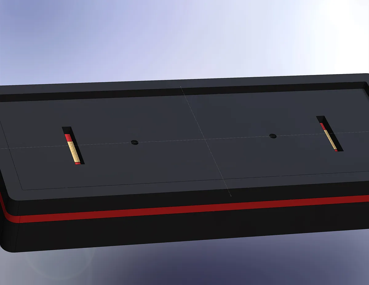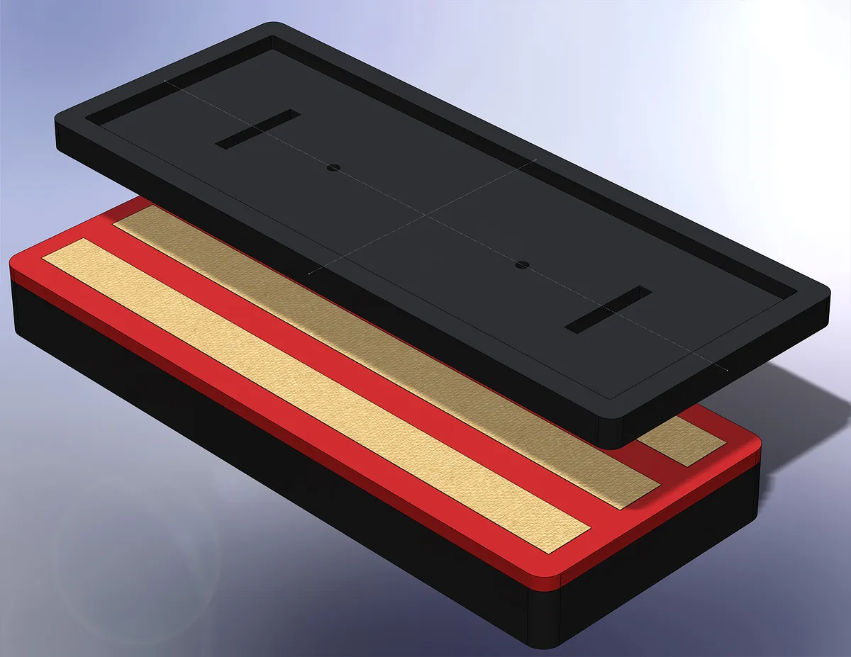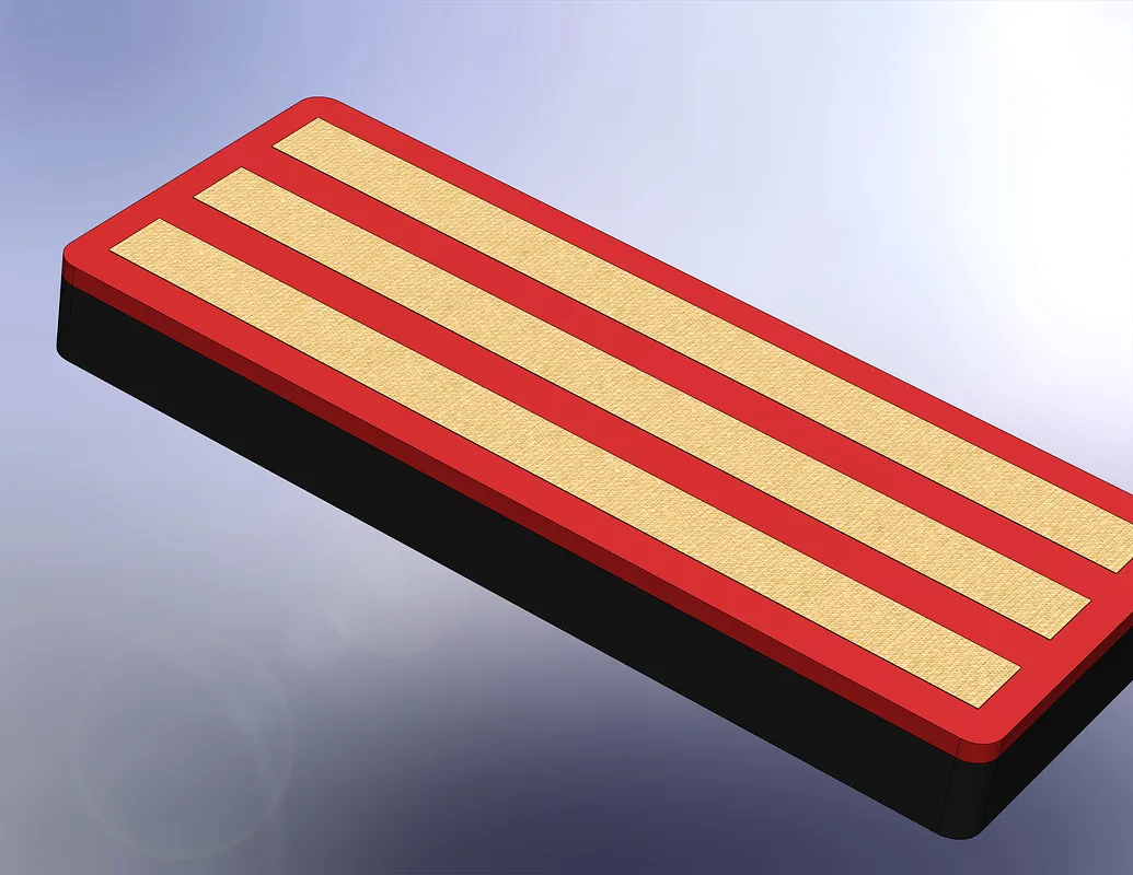 Take 3 of the strips, and stick them onto the top of the 'Lightsaber Stand Base panel', ensuring that the tape is around 10 mm from the edges.