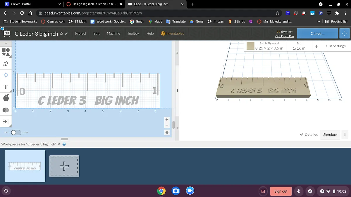 chloe leder per 3 big inch ruler ready to be cut and carved into a real ruler thank you sop much for being a great teacher and letting us do thing - chloe leader