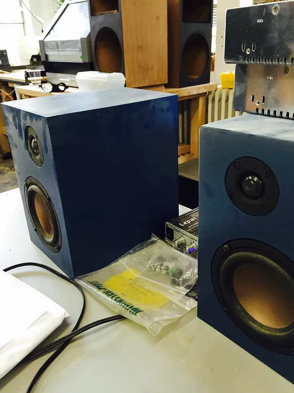 An enclosure for Paul Carmody's popular bookshelf HiFi speakers. We have them loud in the shop around the clock!