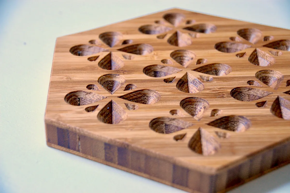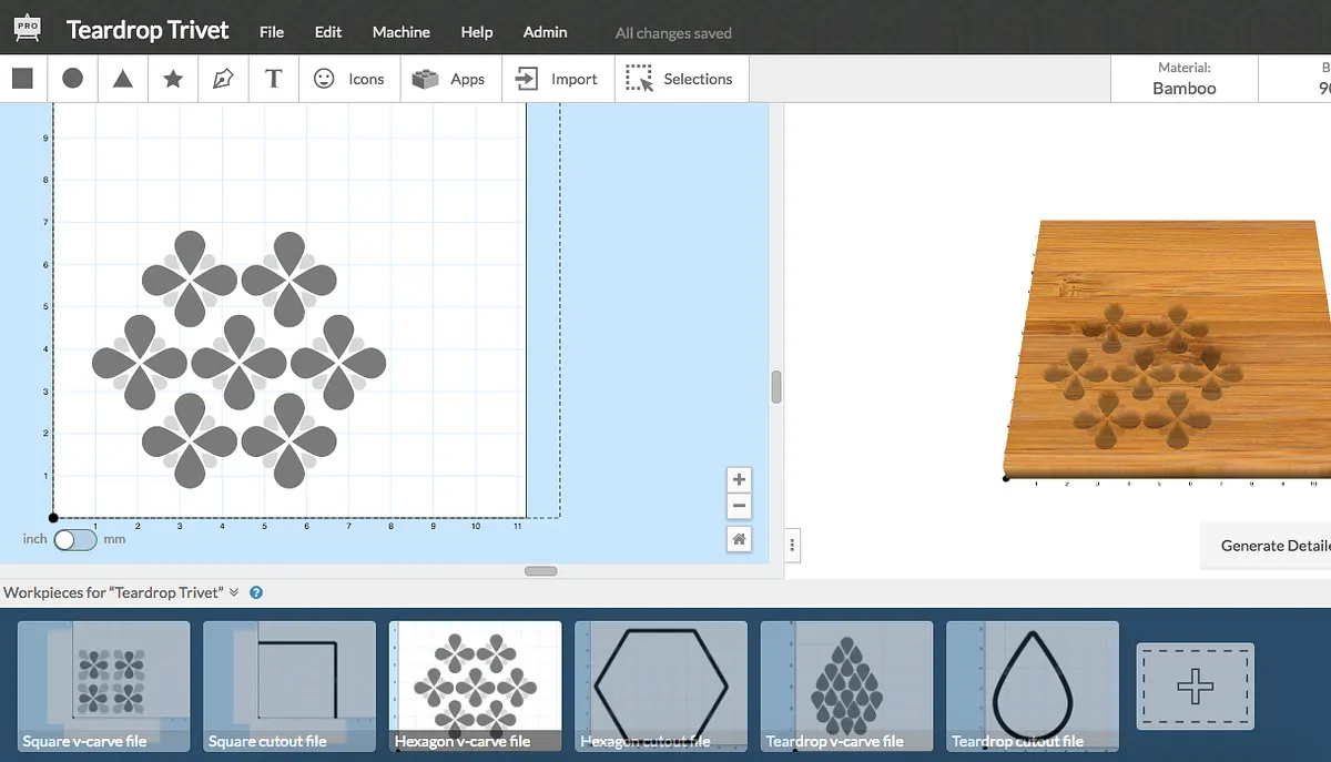 There are three different styles for this trivet in the Easel file; hexagon, square, and a teardrop. They all utilize the same basic teardrop-shaped pattern for the design.