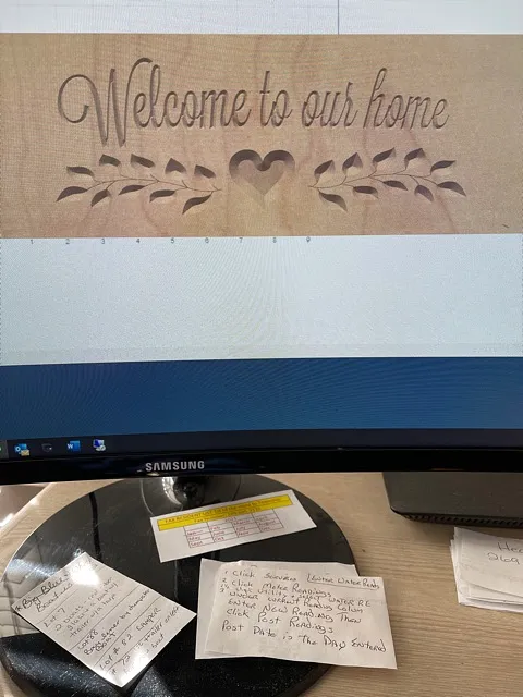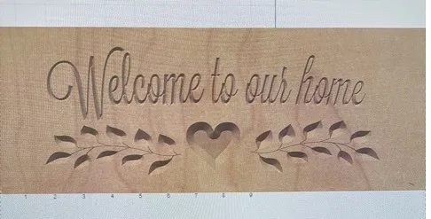 Carved with a 90 degree v-bit 1/4 inch diameter and a 1/4 in deep