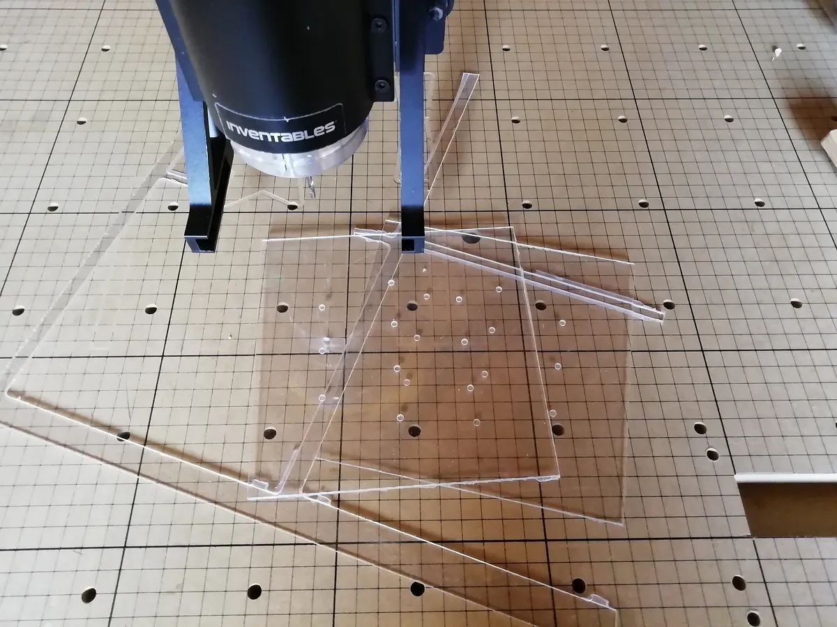 Front Cover Screen Cut a thin slot in the front of the case top, and the top of the case front, to accept the ends of the acrylic front cover. Dry assemble the machine, and measure for the cover. I found it best to cut the cover material with a craft knife, scoring it deeply and folding it to break the waste off.