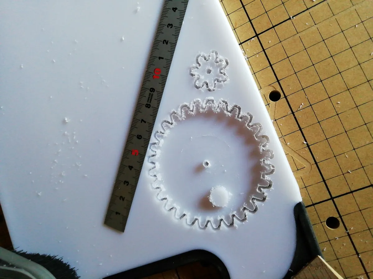 Drive Gear Bore out the centre of the small gear to make a friction fit onto the motor's drive gear.