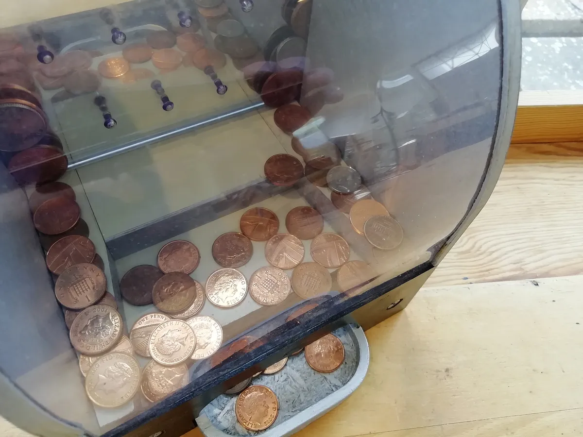 I used: 18mm melamine coated chipboard for the machine's base and slider, 6mm MDF for the sides, top, frieze, and front panels (you might like to add a back panel, but I left that out to have easy access from behind), 2mm clear acrylic for the drop screens (the Easel project contains three pieces, but I replaced the plain third piece with a mirror), 0.5mm clear acrylic for the front cover screen, 10mm HDPE (from a chopping board) for the gears, 3mm diameter aluminum rivets for the 'bounce' bars, Universal synchronous motor by Corgi controls (6W 5rpm 230Vac), 15mm Skate bearing to pivot large gear, and, of course, made it to fit new British pennies.
