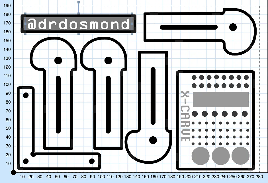 A maximized practice cut for my new x-carve. I borrowed Jeremy Richards cam clamp design (couldn't get the tapers to upload), some of Mike Bryan's bit storage caddy, and made a corner bracket, and name plate.