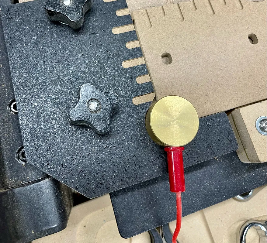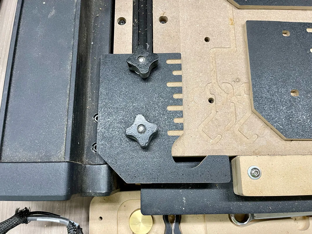 An alignment plate for the left side on the T-Track to square up your board to the zero position when homed. Designed for 1/4 inch MDF.