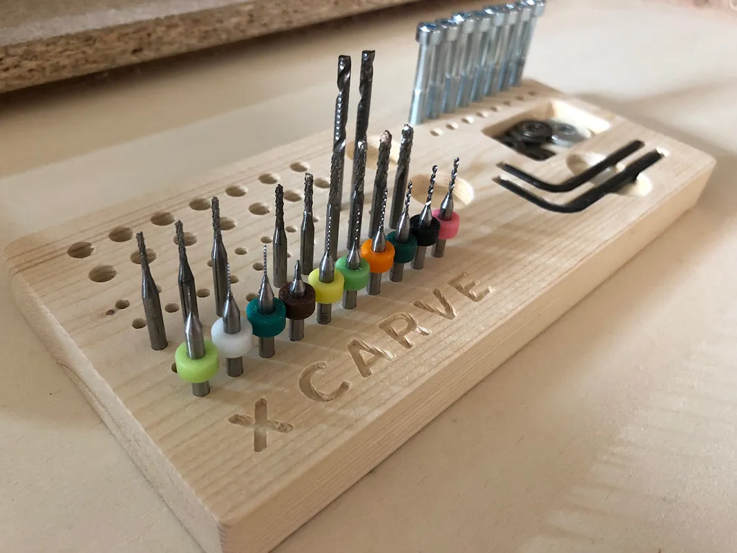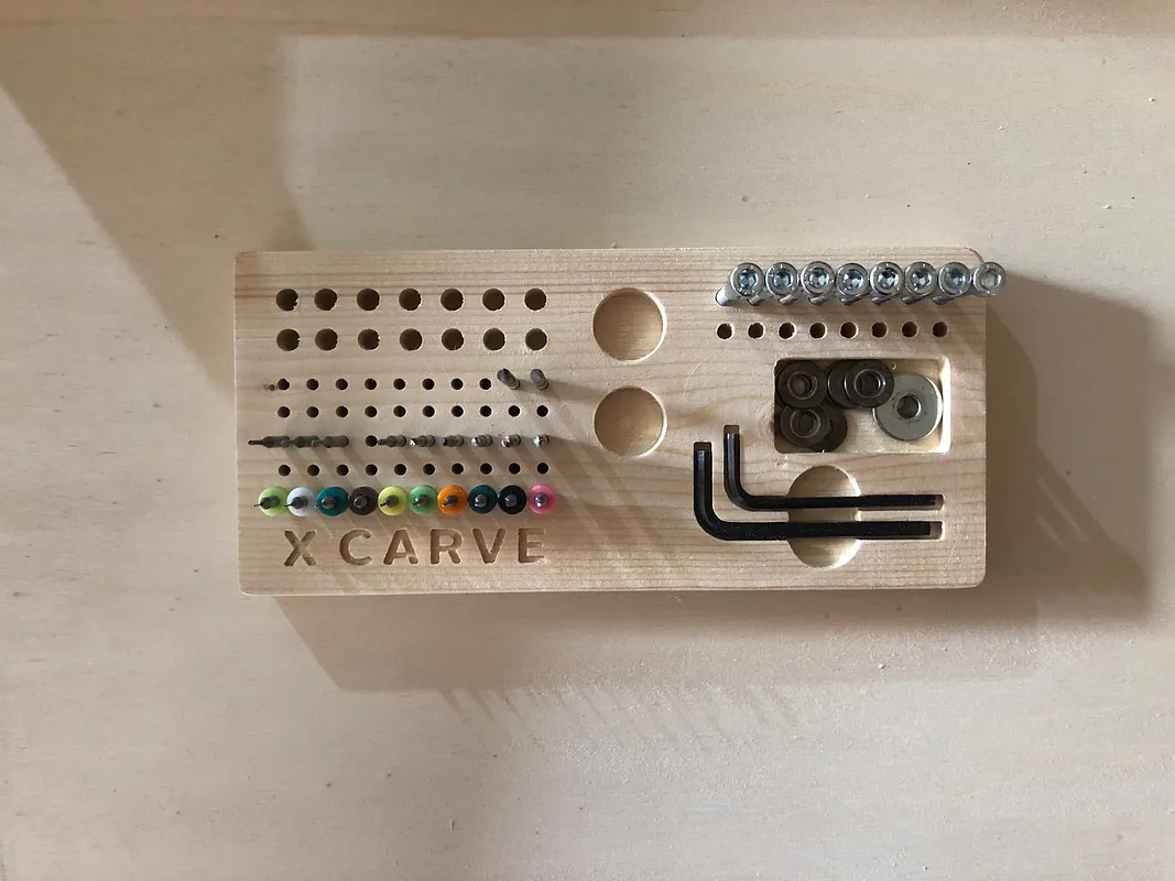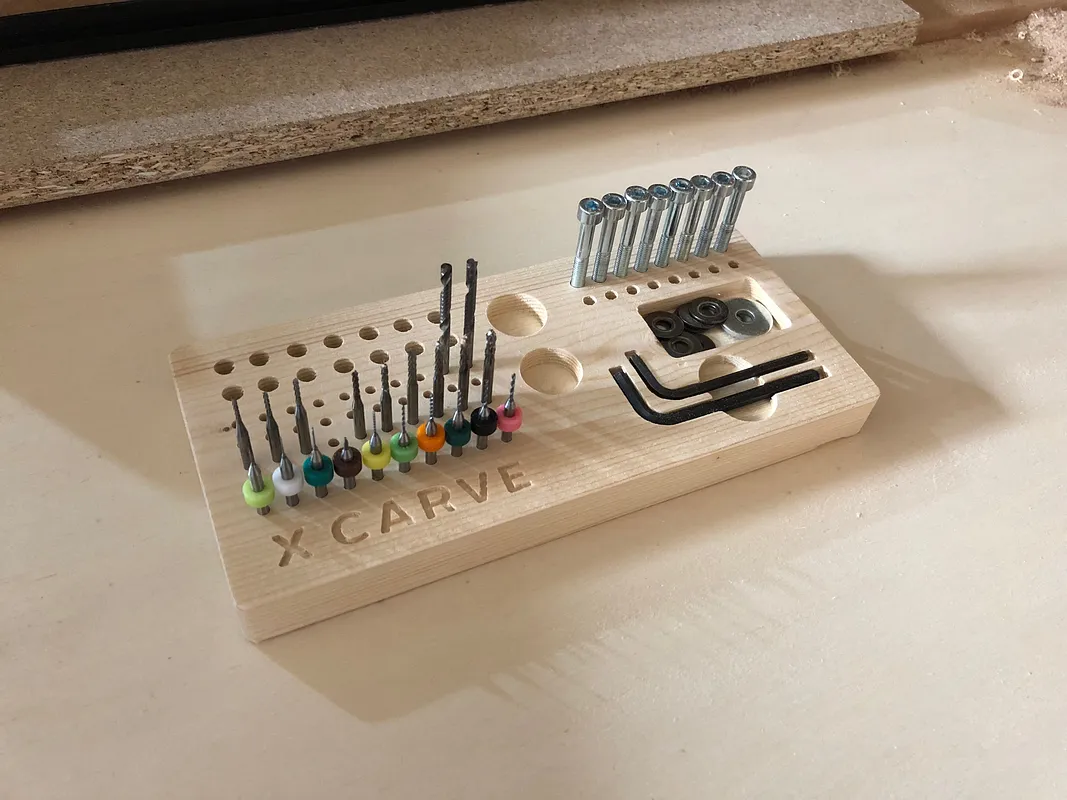 This caddy is made to work with the standard collet wrench and collets for the quiet cut spindle. I modified the Allen keys, and added the x-carve logo. Enjoy!