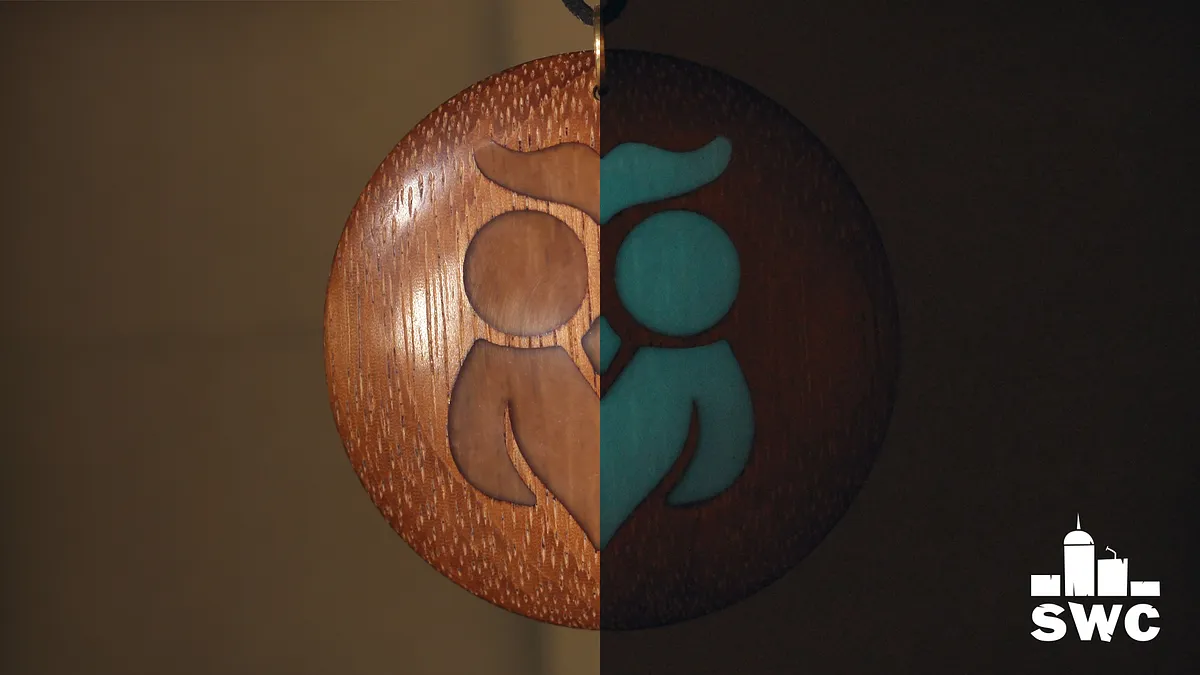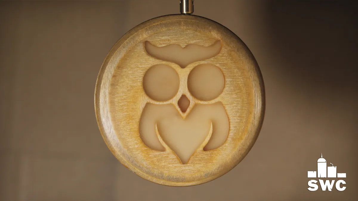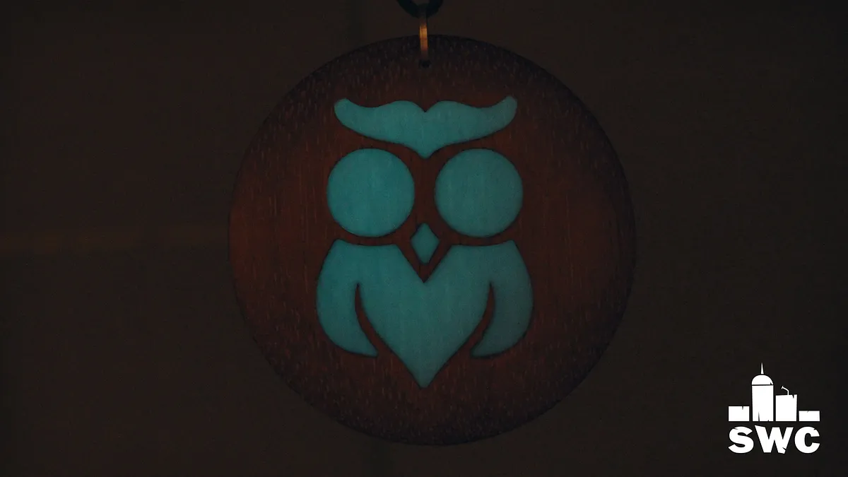 Pendants. One out of plywood and one out of mahogany. I used my 3D carving machine to carve an owl. I then filled it with fluorescent resin and used my lathe to turn them round. I also used my metal lathe to make brass hangers for both. Info about the making process: https://tinyurl.com/y4o49y9l