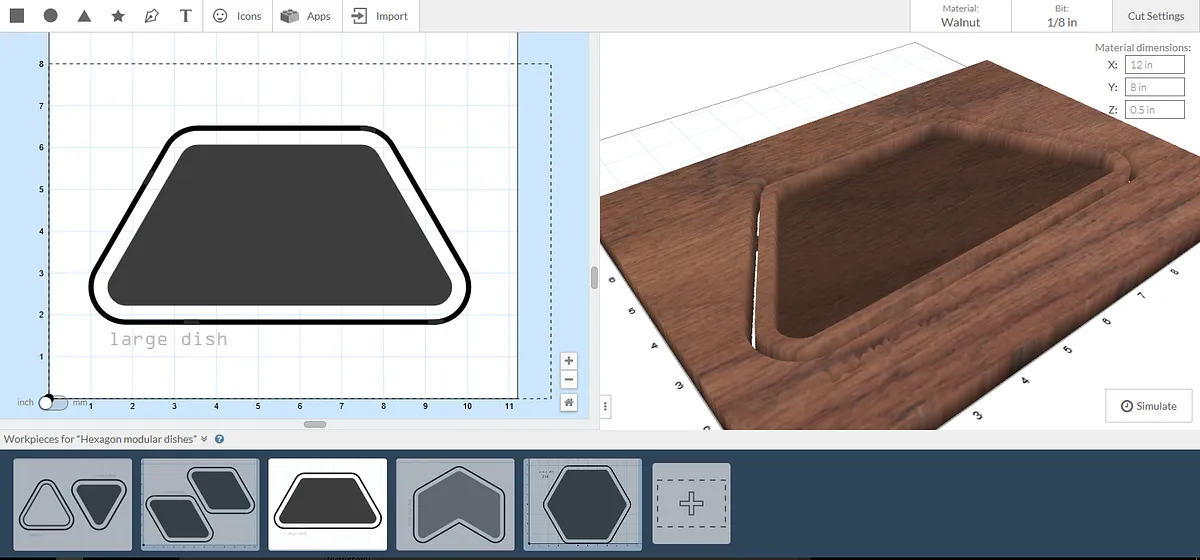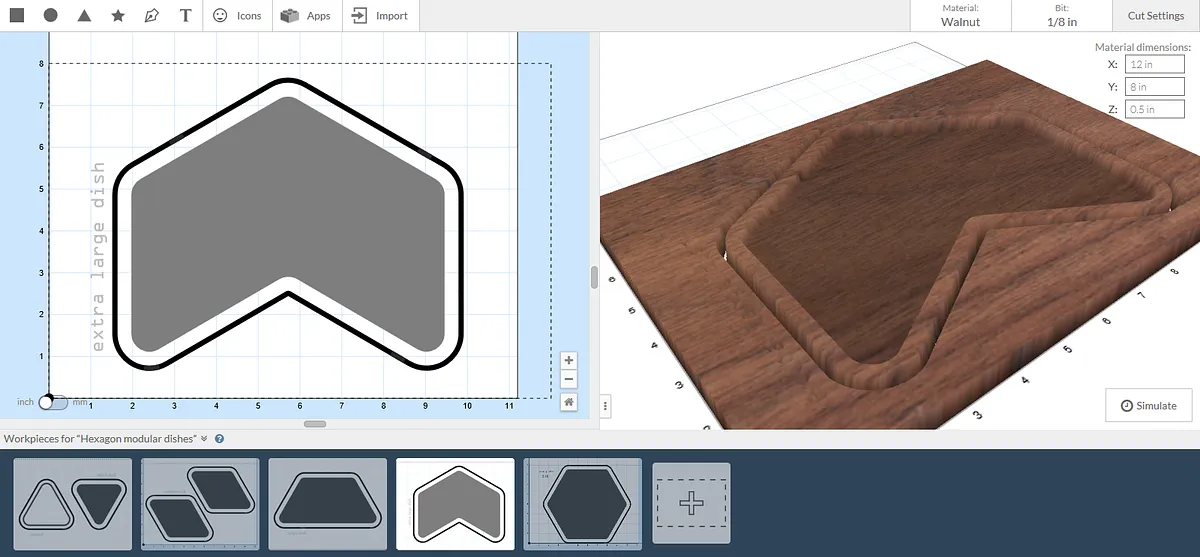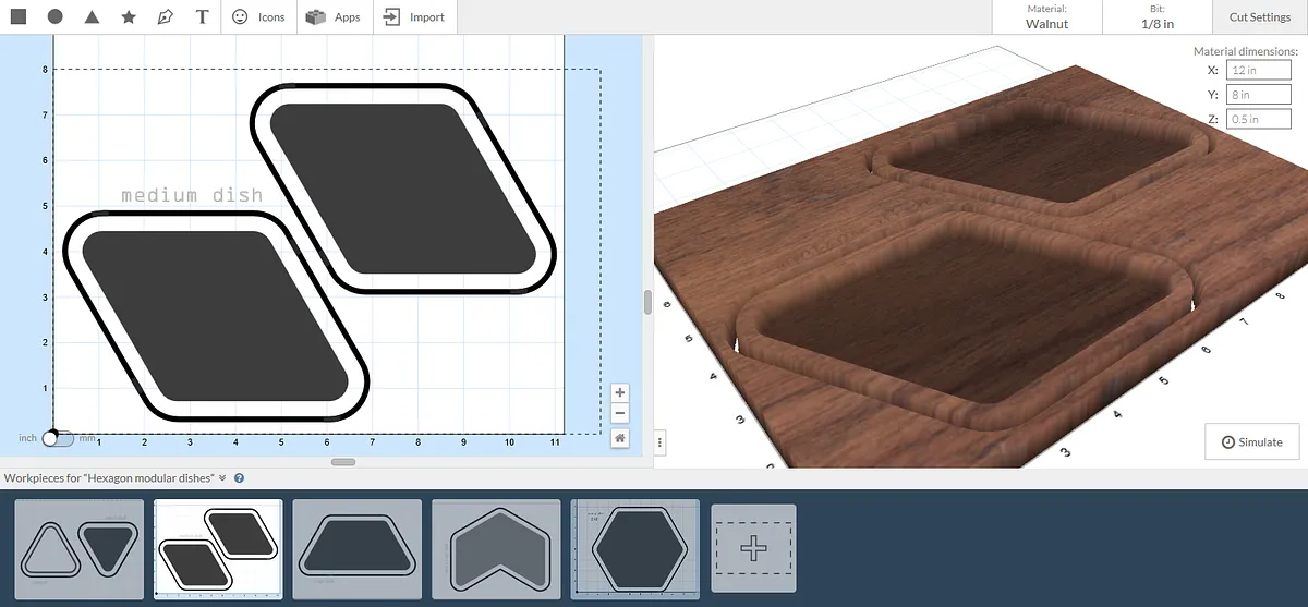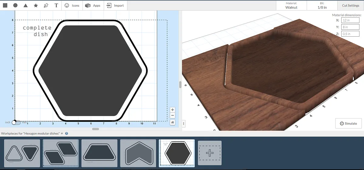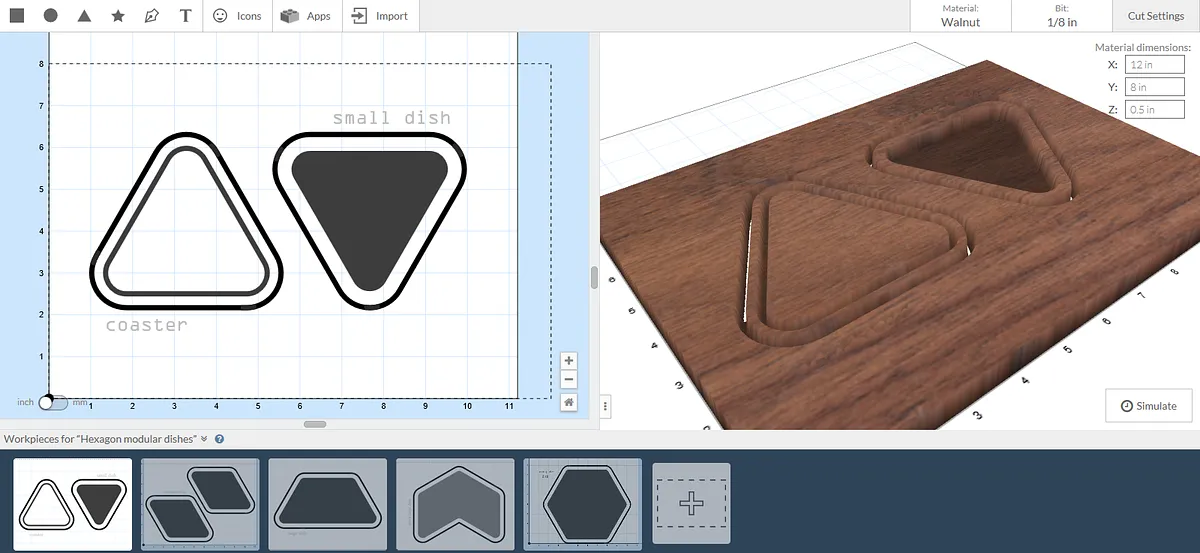 I have designed a set of modular dishes based in the shape of an hexagon. It includes differents sizes and coasters. There are infinit numbers of combinations. Think about in a glass of wine, cheese and bread. Even a complete menu. I hope it like it. It is my first design but not the last one.