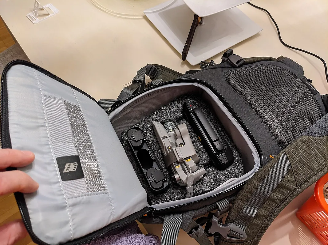 If you have a Mavic Mini you can use this to make foam cutout for storage or bags for protection during transport. this cutout fits a Lowepro Flipside Trek BP 250 AW backpack. cut in two operations one all the way through and one pocket operation. glued together with glue. foam closed cell 31mm.