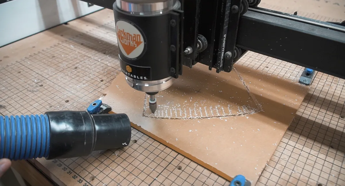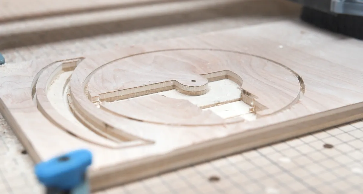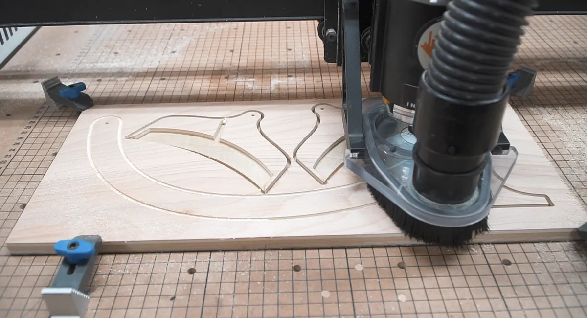 For all wood pieces we used an 1/8” straight bit for all the carving on the x-carve. First, we carved out the base which turned out perfectly.