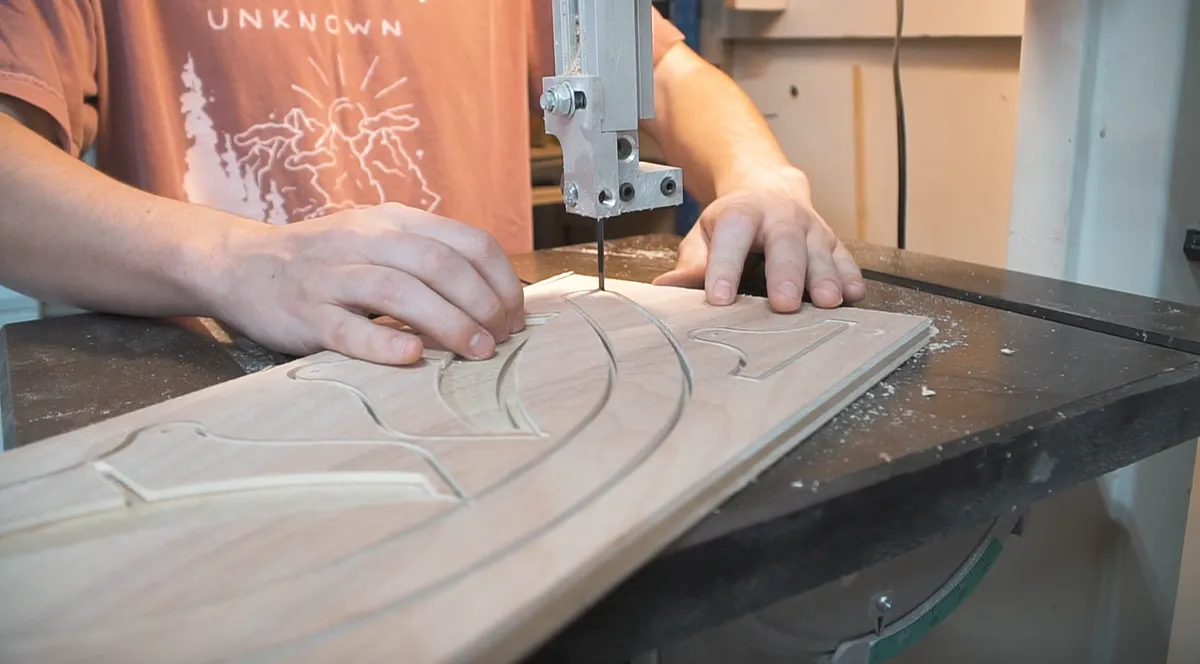 Instead of cutting the pieces all the way through with the cnc, we decided to only cut half way through to save some time. Then we cut them completely out with the band saw. Then we can use a flush trip router bit to clean everything up