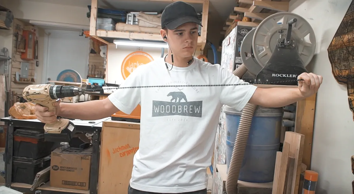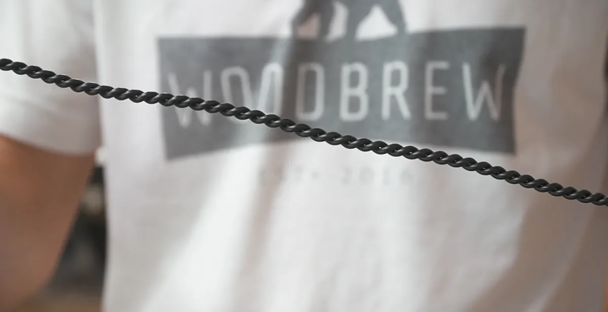 First we are going to pull out a few feet of wire and cut 2 pieces. Using a drill placing the two wiring in the chuck and holding the other ends while we spin the wire to create a nice looking coil of wire. This will really dress up the exposed wire in the finished project.