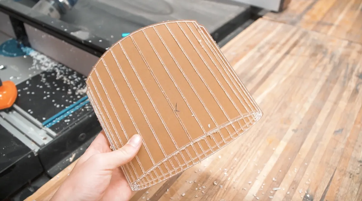 Once the first sheet was done, we put on a new 1/2” sheet and carved the pieces where the arm will connect to the base, the pieces for the acrylic, and the arm. We left a link to this Easel file down in the description below if you want to make this lamp yourself, or try out Easel for the first time. It's a free online software and has so much creativity. You can even import your SVG files straight into this program like we did and it works out perfectly.