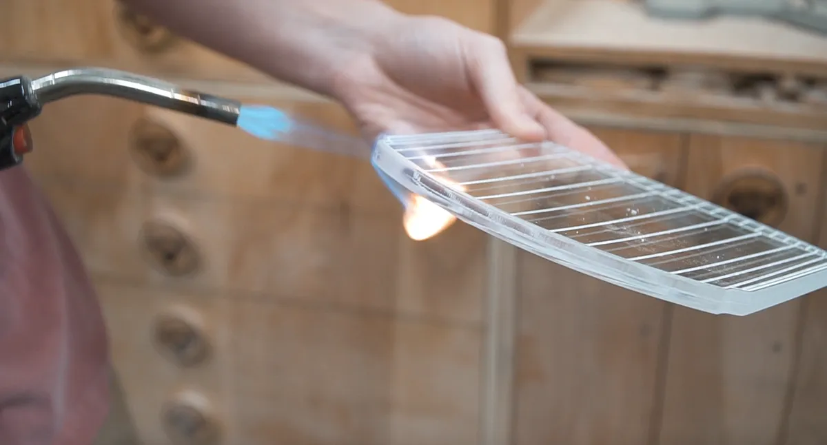 We wanted to make the edge of the acrylic where the lights will be coming though a little clearer so we used a torch to melt away the plastic so to speak just by going back and forth with the flame diligently. this method seemed to work out pretty well i would say.