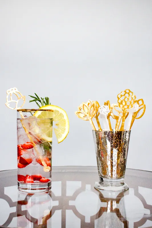 These Art nouveau-inspired floral designs on your standard swizzle stick are the perfect amount "Pinteresting" to add to any bar cart, yard party spread, or outdoor wedding.