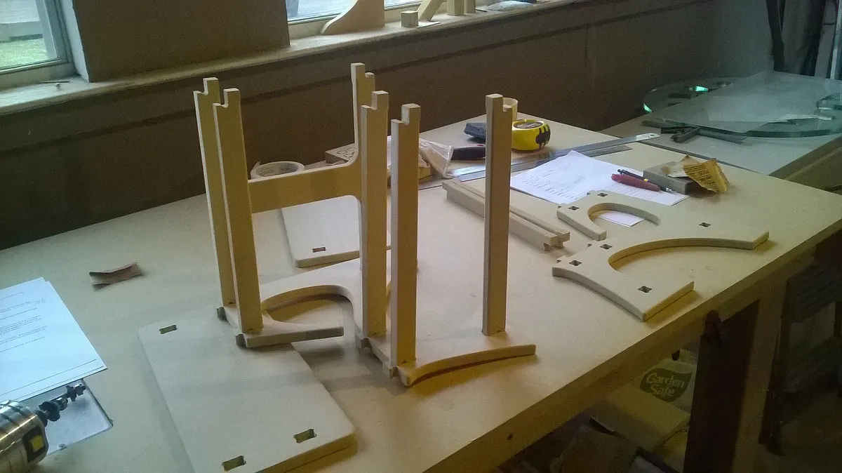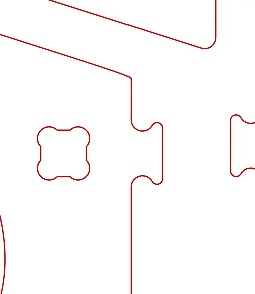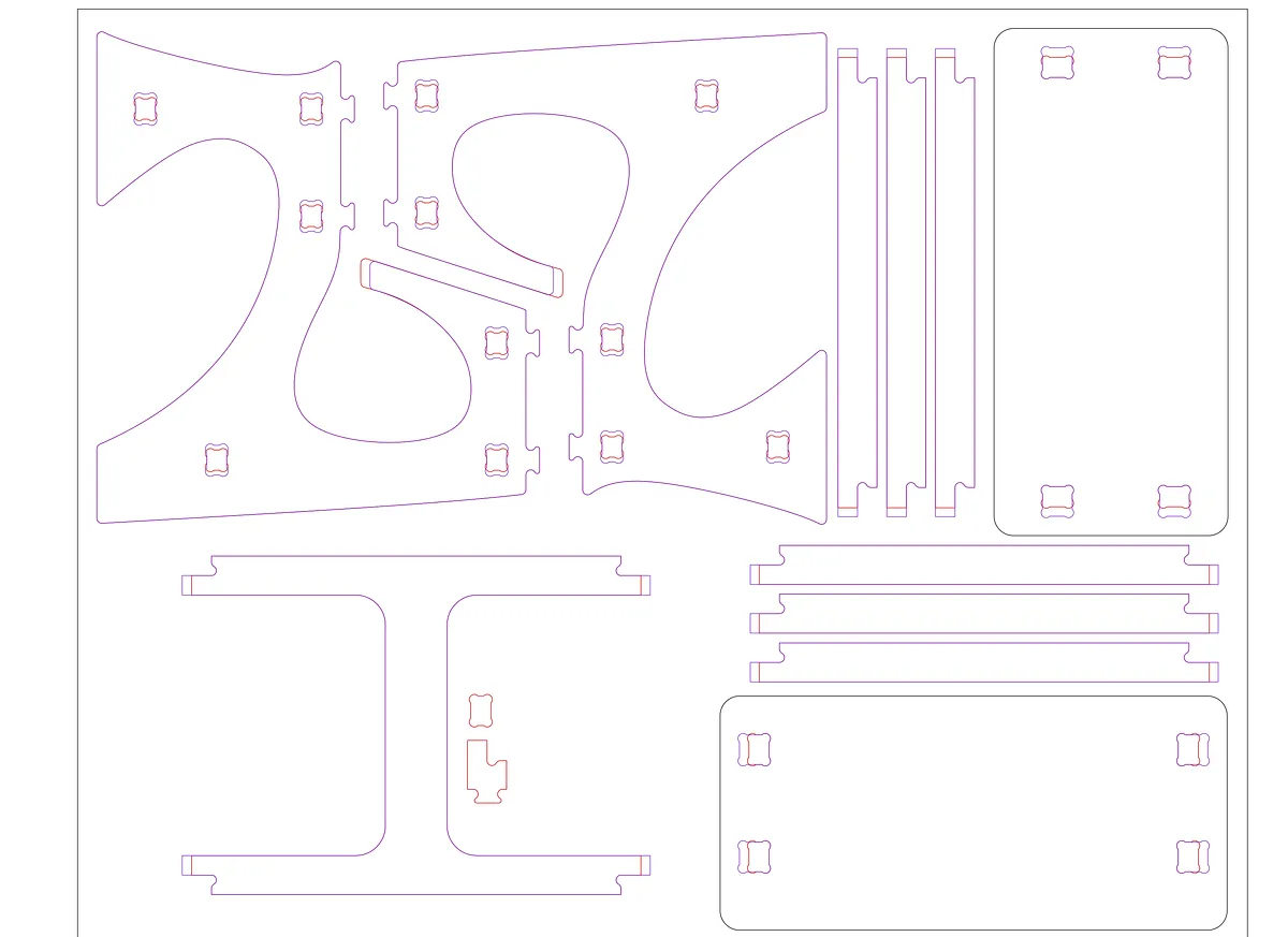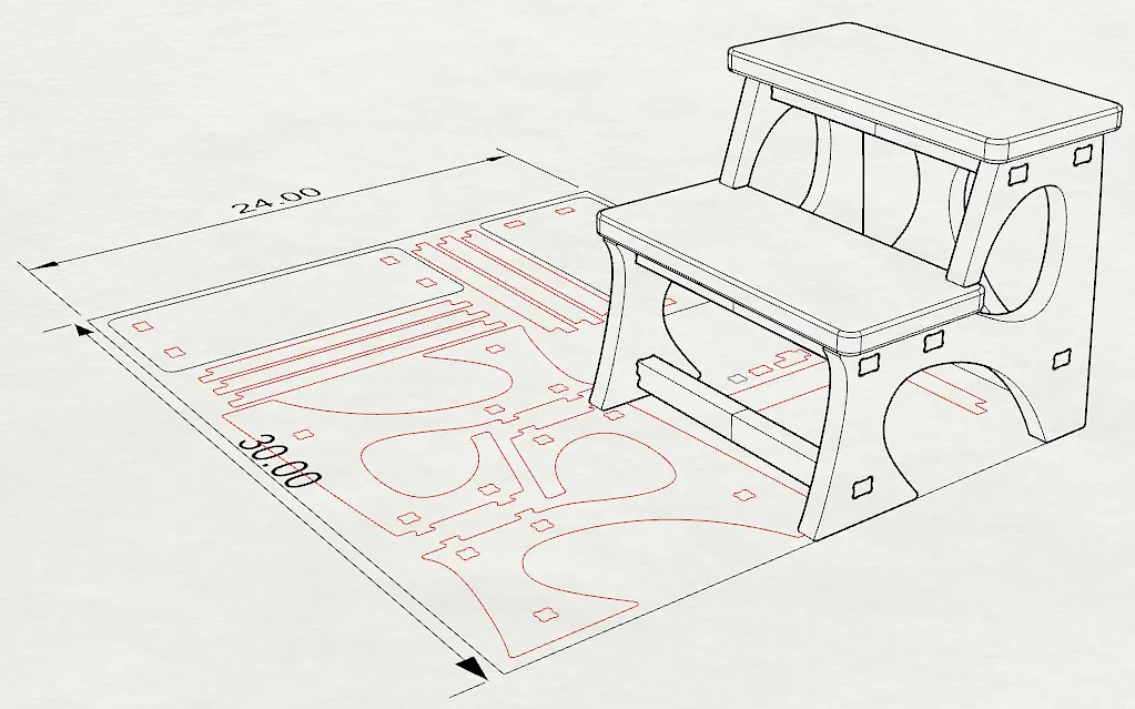 Keep in mind that these two versions are merely examples and need to be modified depending upon the thickness of your material. Notice the red curves in the image. These are the new adjusted curves for the smaller thickness. However, for this design, the stool steps slots do not cut through. the depth of cut remains the same regardless of material thickness. The DOC for the stool steps slots is 0.355.