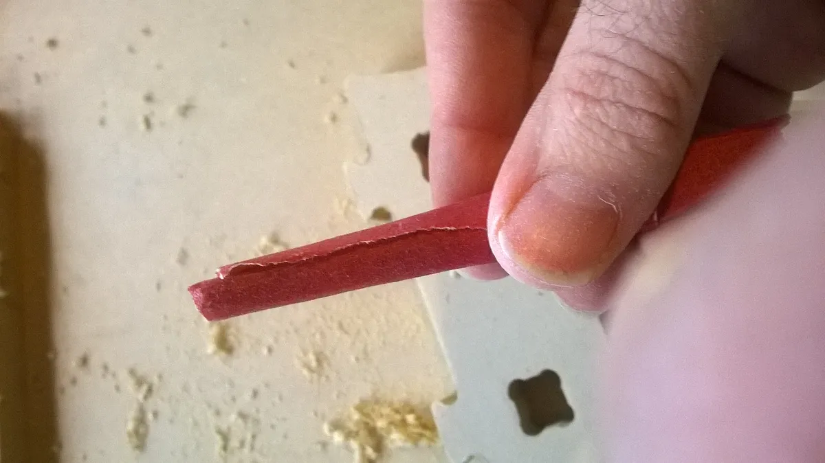 After cutting, it is time to do some finishing. First, I like to break the edges with sandpaper to get any trash left over from the cut.