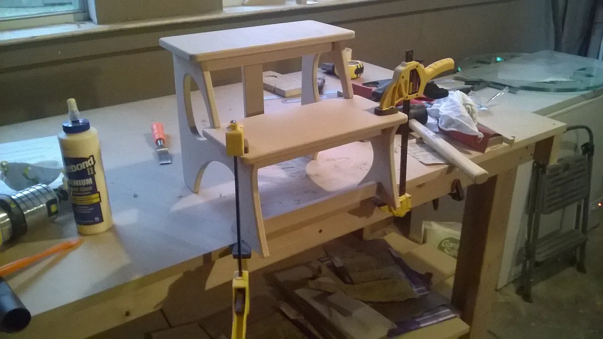 In my case, I will be assembling my MDF stool then painting. For my other stool with mixed material (MDF/Ply), I assembled the frame and will be staining the wood and painting the mdf followed by assembling the steps.