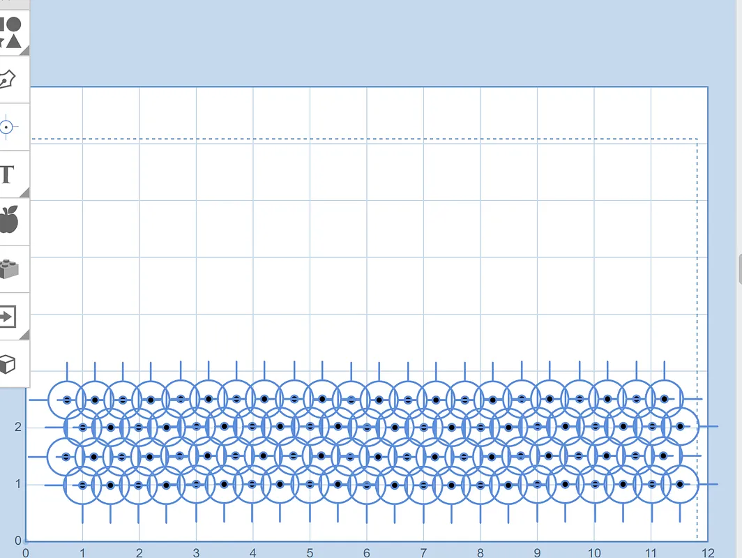 A template for a series of 3mm vent holes on a 12"x12"x1/4" sheet of acrylic. Modify to your materials and/or use.