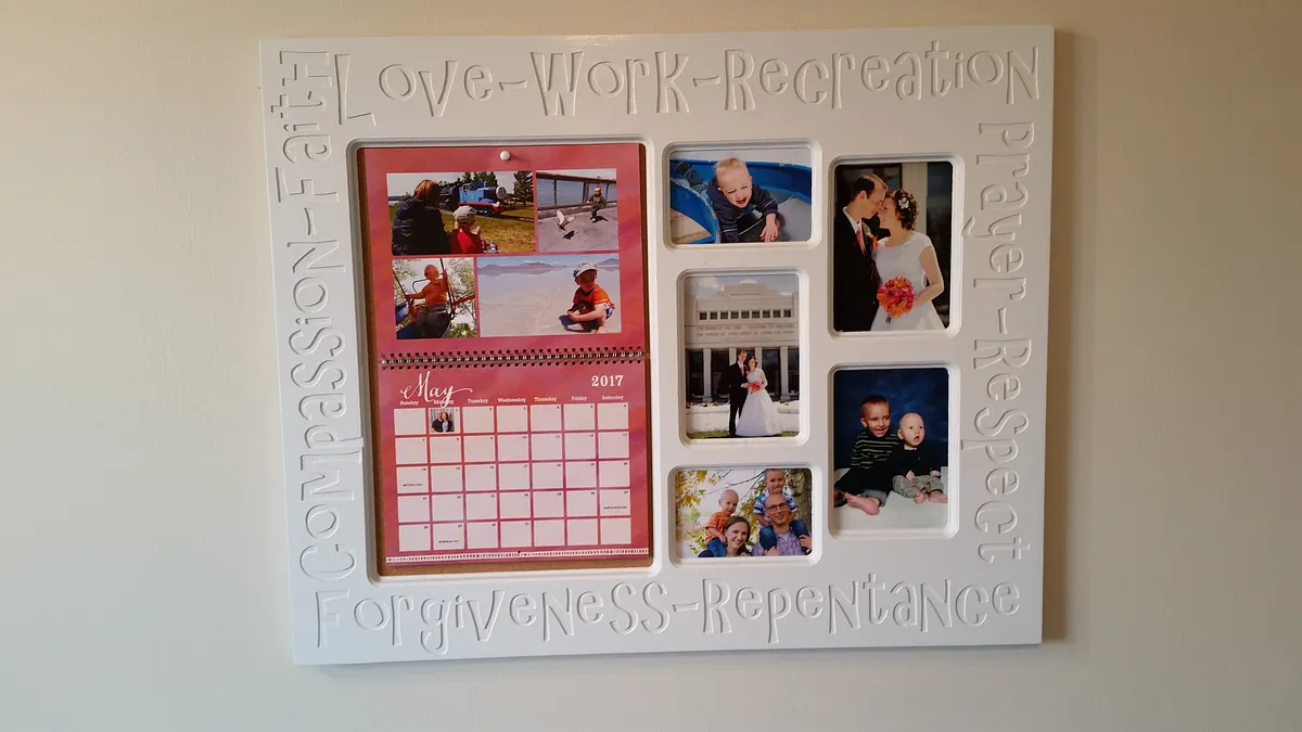 This frame has a spots for 3-5x7" pics, 2-4x6" pics, and 1 cork board for posting notes or a standard 8x11 calendar. This requires some extra hand routing afterwards to finish it, here is a link to a video I made to explain my process further: