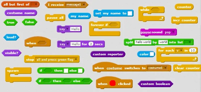 This can be used to assemble blocks that represent computer code from scratch.
