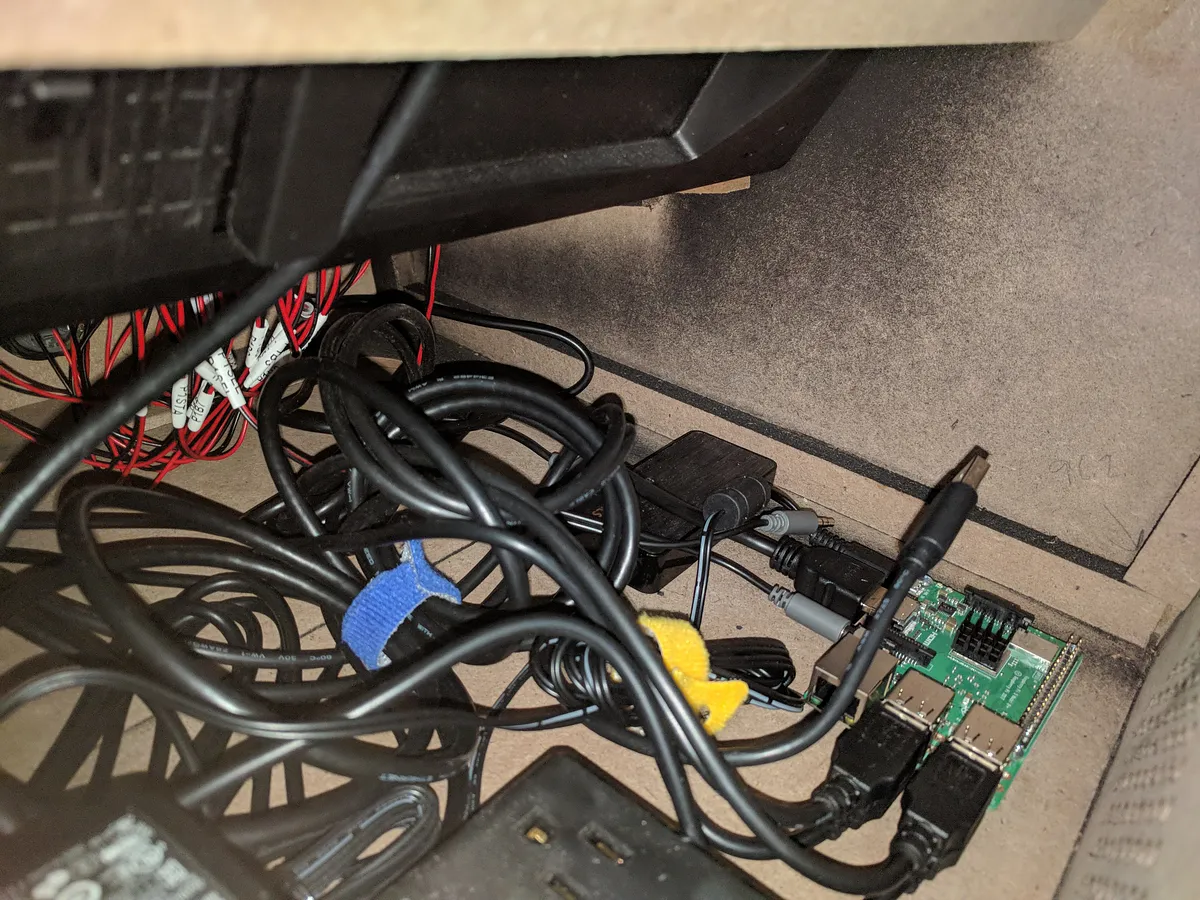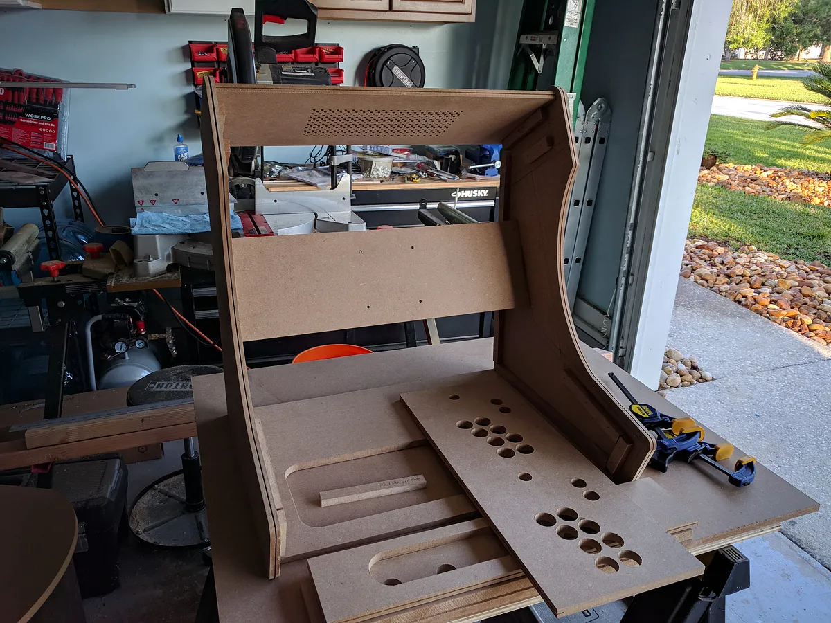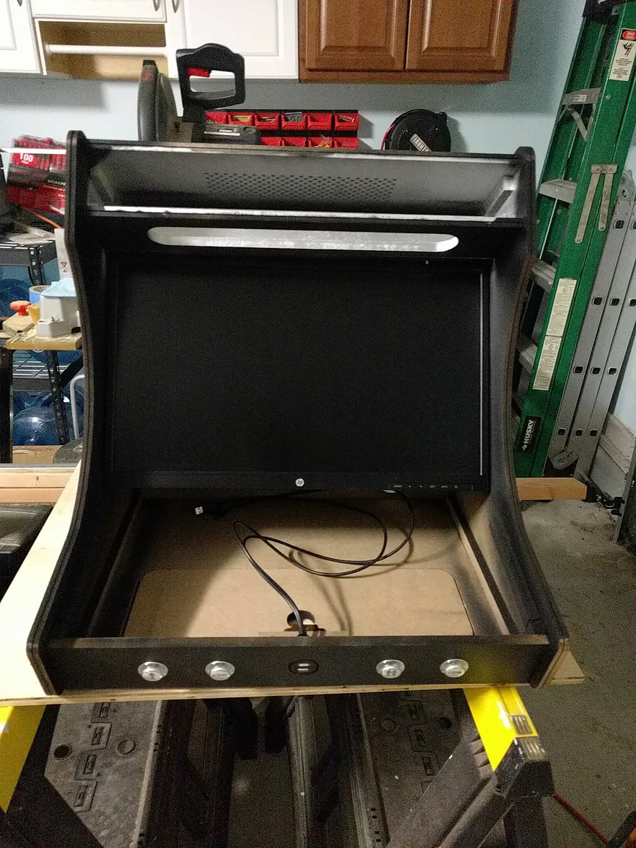 (1) 4x8 Sheet 1/2" MDF (1) 18 x 24" .08" clear acrylic sheet (Marquee and button cover) (1) Momentary switch (https://www.amazon.com/gp/product/B0094GP7SQ/) for safe power on/off Raspberry Pi 3B+ (1) Jumper wires - to connect switch to Pi3 (you don't need this many, but I bought for other projects) https://www.amazon.com/gp/product/B01LZF1ZSZ (1) Raspberry Pi 3 B+ and power supply (you don't necessarily need the case) https://www.amazon.com/gp/product/B07BC7BMHY I used the 3 B+ as it has built in Wifi and bluetooth, didn't have to use a USB port for a dongle (1) Micro SD Card - recommend 32Gb or larger (1) LED Strip Lights - white https://www.amazon.com/gp/product/B00JQV6Q4I (1) LED strip to strip connector https://www.amazon.com/gp/product/B076VW86Y2 (1) LED strip power jumper https://www.amazon.com/gp/product/B076VF3FBM - you don't need 10, but only a dollar more than 1 (1) USB Mini Sound Bar https://www.amazon.com/gp/product/B076XC6PCN (1) 2 Player USB Controller, buttons and joysticks https://www.amazon.com/gp/product/B01NCW0I3F You can use others, but you will need to adjust hole sizes to accommodate (1) Coin / 1P/2P buttons https://www.amazon.com/gp/product/B01N5Y8E2Z/ - I did not hook up the LEDs on these. Extra button cables, to provide connections for the 4 coin/1P/2P buttons. I just bought another partial kit as it was only a buck or two more. https://www.amazon.com/Easyget-Joystick-Raspberry-Retropie-Projects/dp/B01C5J5AJO (1) HP v244a 23.8" monitor http://www.tigerdirect.com/applications/SearchTools/item-details.asp?EdpNo=4737496&CatId=11640 You can use your own monitor, but you will need to adjust the width on the panels and monitor mount panel to accommodate. (4) M4 x 20 or 25 to mount the monitor using the VESA mount to the monitor mount board. (2) 12" piano hinges for the bottom piece button wire access and back panel access doors (1) door handle for back panel access door (or you can add a hole to it like I did on the bottom) (1) power strip that has mounting holes on the back (to keep it from moving around)
