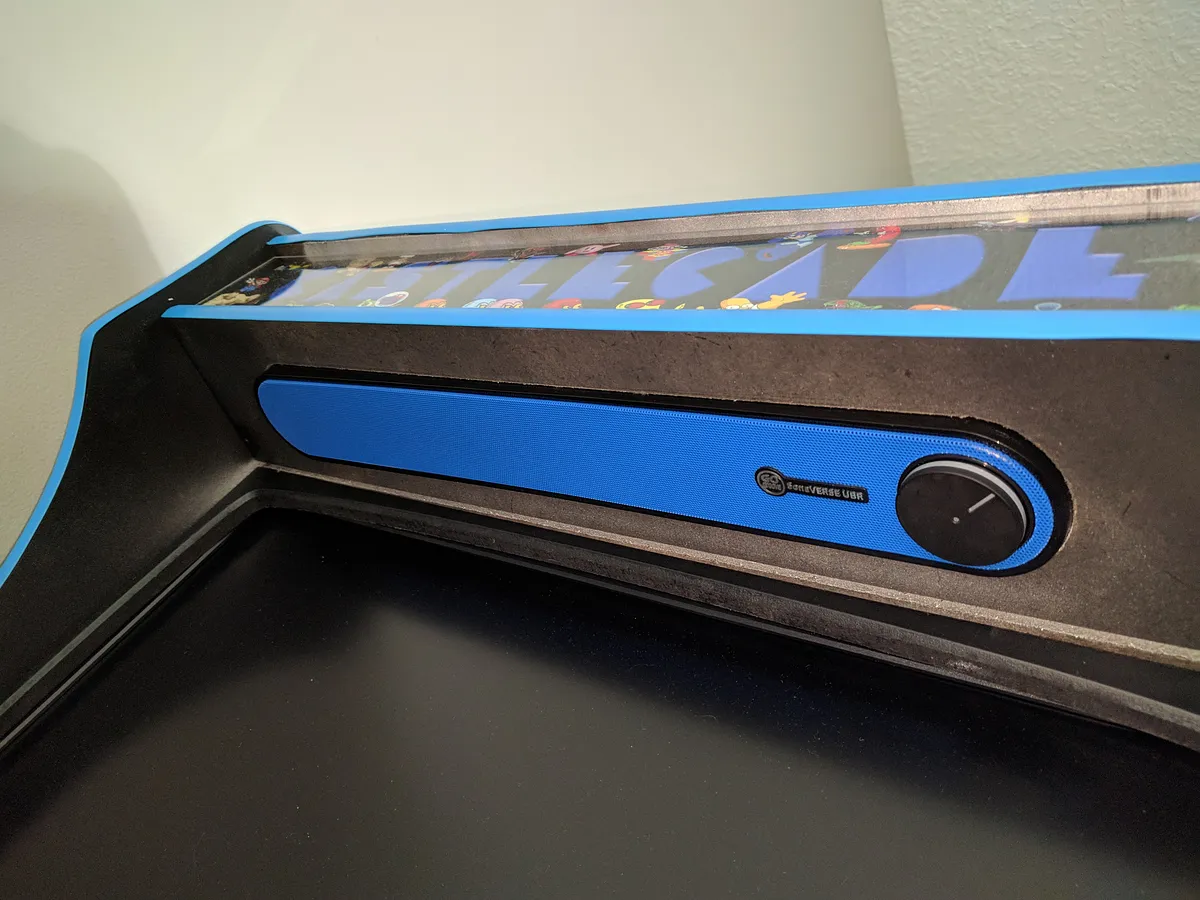 Drop in the USB soundbar and run the wires through the hole in the back marquee board.