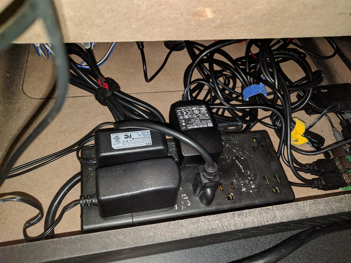 Mount the power strip and Raspberry Pi. Once again, I used short nylon spacers and small screws for the Raspberry Pi..