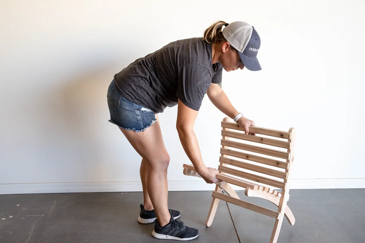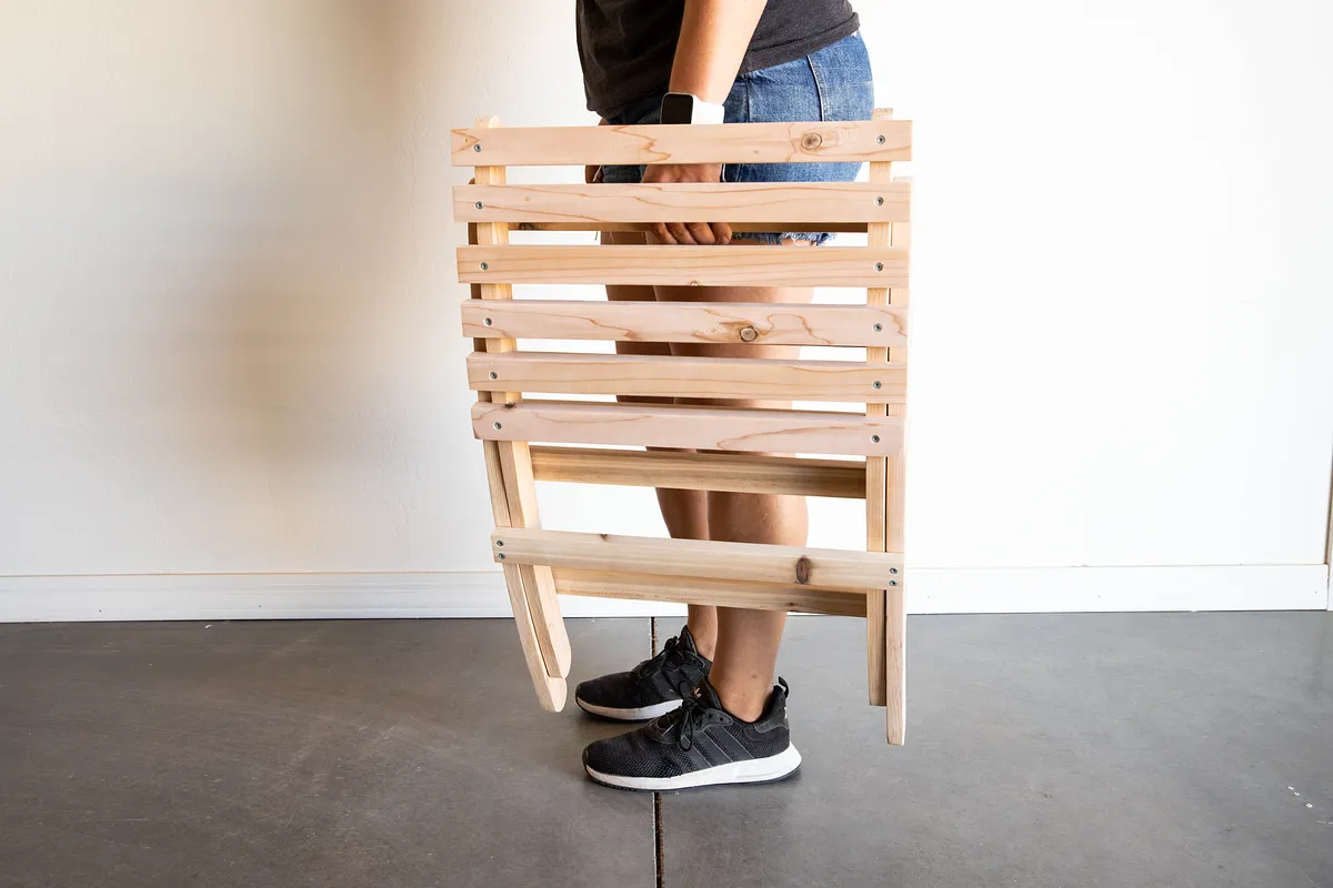 A collapsible wooden chair that folds up and stows away for easy storage. Lightweight and perfect for around the fire pit, at the beach, or at the lake!