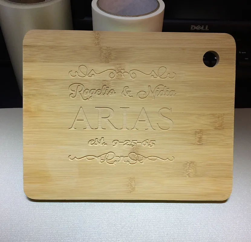 I carved the larger Last Name text with a 1/32" up-cut bit.