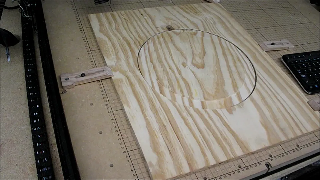 Set up Easel to cut on the inside of the circle all the way though the plywood.