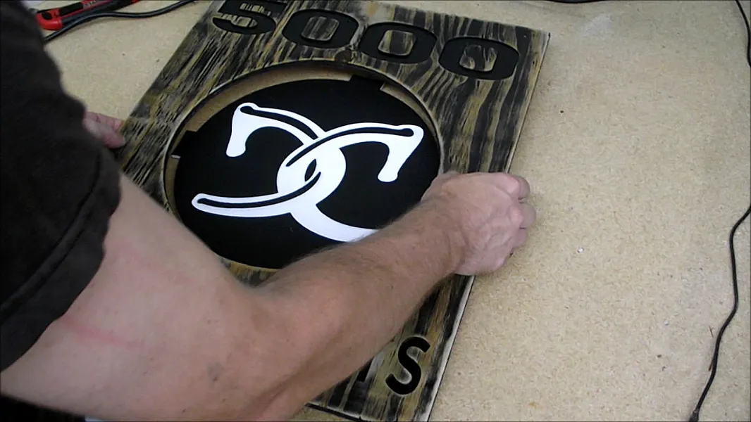 Glue the logo into the plywood using the tabs. I used super glue/CA glue in my project I would advise to use epoxy not CA clue.