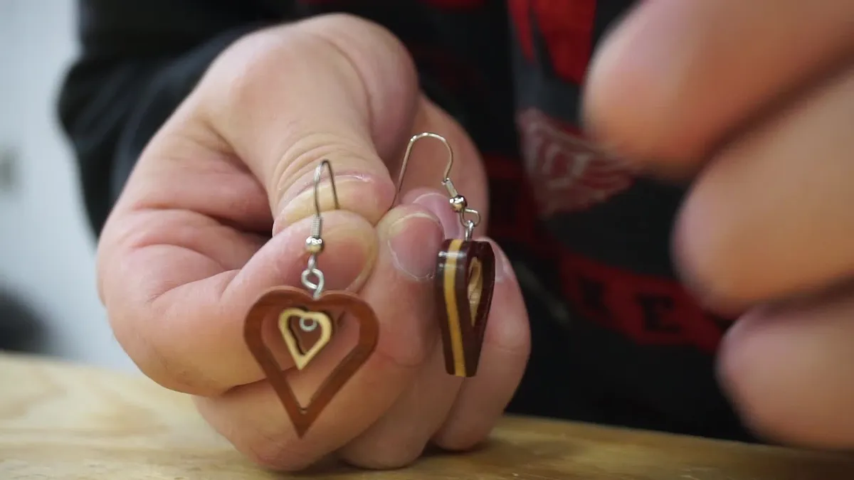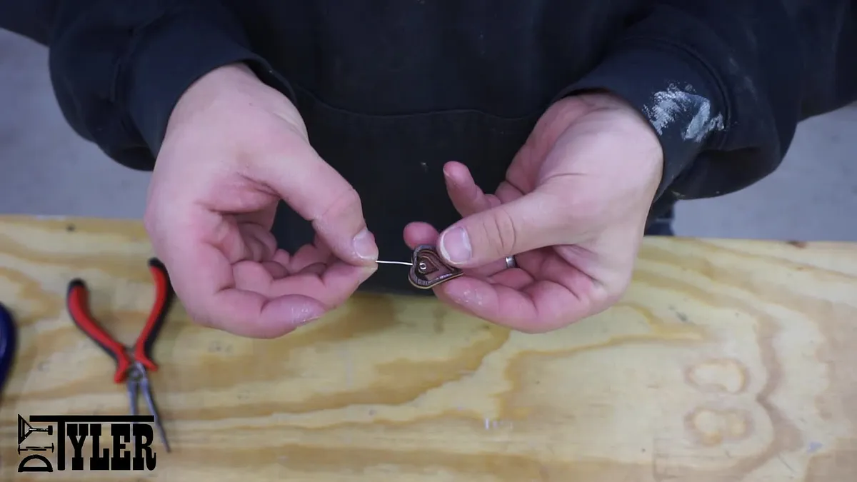 I needed a small hold in the top of the heart to pass a section of wire through to hang the earrings. I marked this hole using a awl to prevent the bit from traveling and then drilled slowly and with high RPM using a 1/16" drill bit.