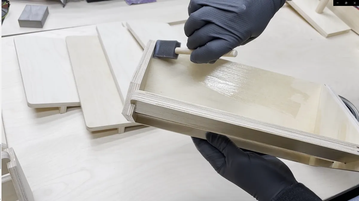 I added glue to the rabbet and the two mortises on the side pieces and spread out the glue in those areas.