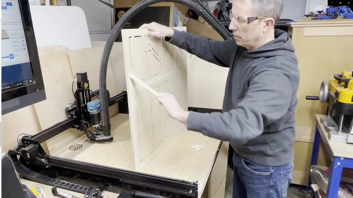 TOOLS - X-Carve 1000mm CNC Machine by Inventables - "Link":https://www.inventables.com/technologies/x-carve?ref=MakingAtHome - Router Bit - 1/4" Downcut Bit - Various clamps - I like the Bessey EHKL24 - "Link":https://amzn.to/3ucN4Mt - Random orbit sander - Shop vac - Drill - 9/64" drill bit - Tape Measures (my favorite two): Fastcap PMS-16 Auto Lock ProCarpenter Tape Measure - "Link":https://amzn.to/333fTMN or FastCap PSSR16 16 ft Standard Reverse Measuring Tape - "Link":https://amzn.to/35eQe6k