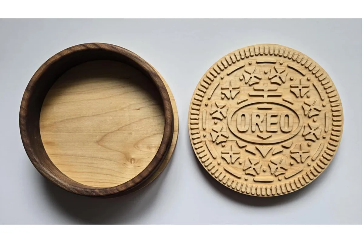 This is a keepsake box to store all those precious, personal items. It just happens to be patterned after an Oreo Cookie, Double Stuffed! The cookies are 3/4" and the centre is 1 1/4".