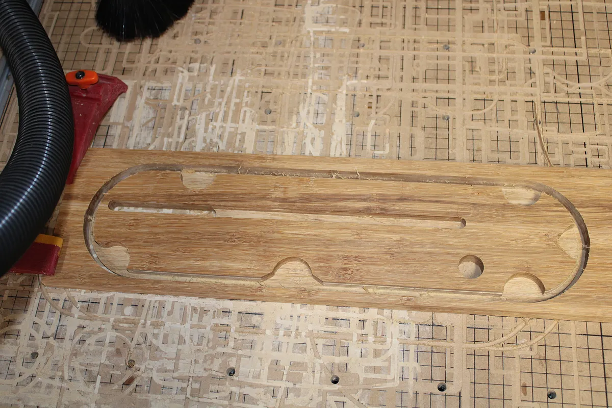 Granted I didn't use Easel to cut my inserts out, but I set it up on Easel for your use. I used an 1/8" upcut bit running at .1 depth per pass 50 in/min feed rate. Tabs on the outer cut only. All others I made "FILL" cuts. This should take about 30 mins. Your fees and speeds will depend on your material.