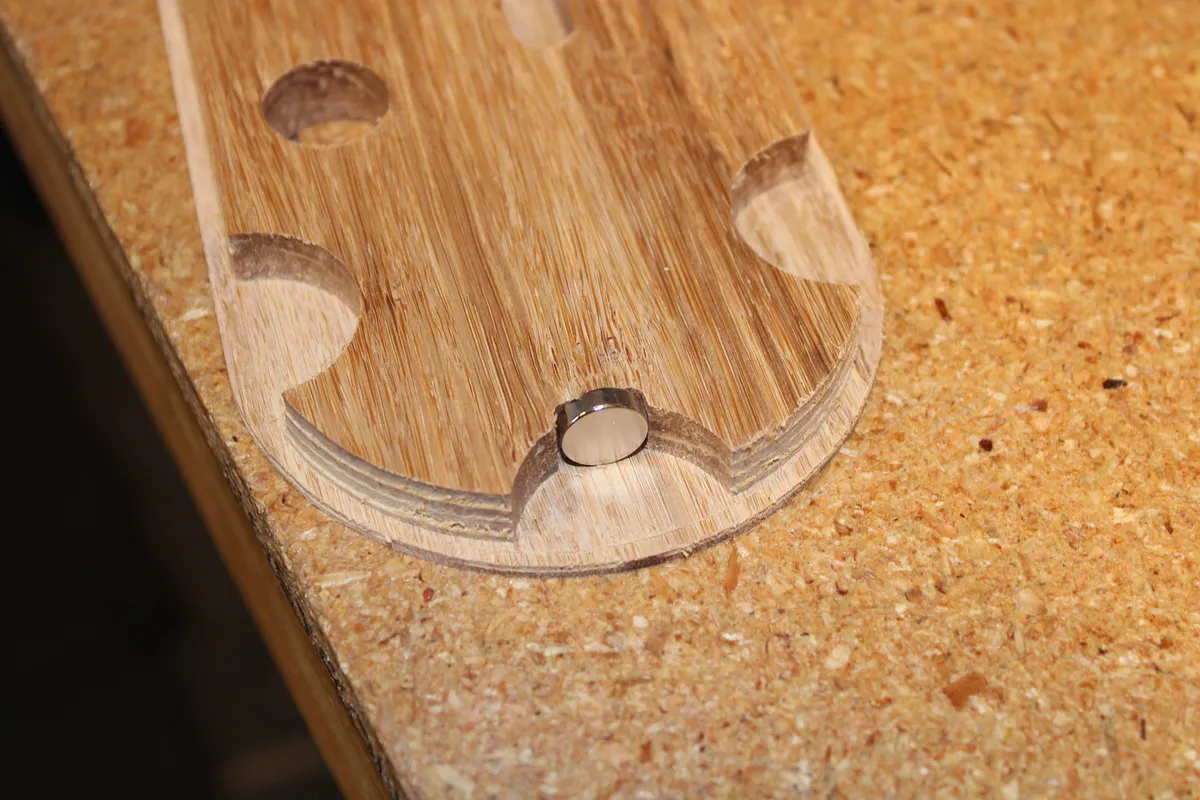 This is optional, but I added a magnet to the end. The cutout will be already done. Its just a cheap .5 round by .125 thick. Got them at home depot in a 20 pack for a few dollars. I used CA glue to hold it in.