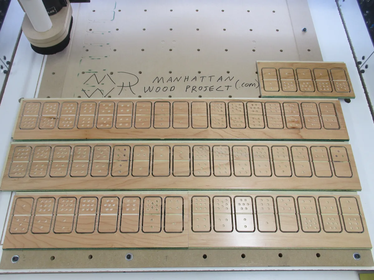 Arrange the dominoes in the Easel project file as necessary for the size of wood you are using. For dominoes that are not part of the immediate cut, you can do one of the following: