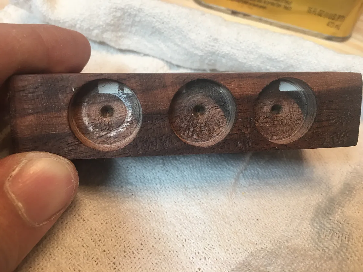 Using a forstner bit on my drill press I drilled down enough so the magnets would sit flush with the bottom of the face.