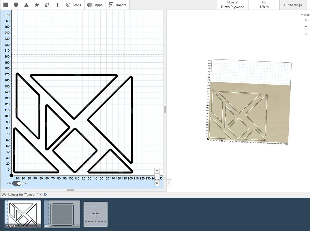 This is a dissection puzzle consisting of seven flat shapes, called tans, which are put together to form shapes. The objective of the puzzle is to form a specific shape.