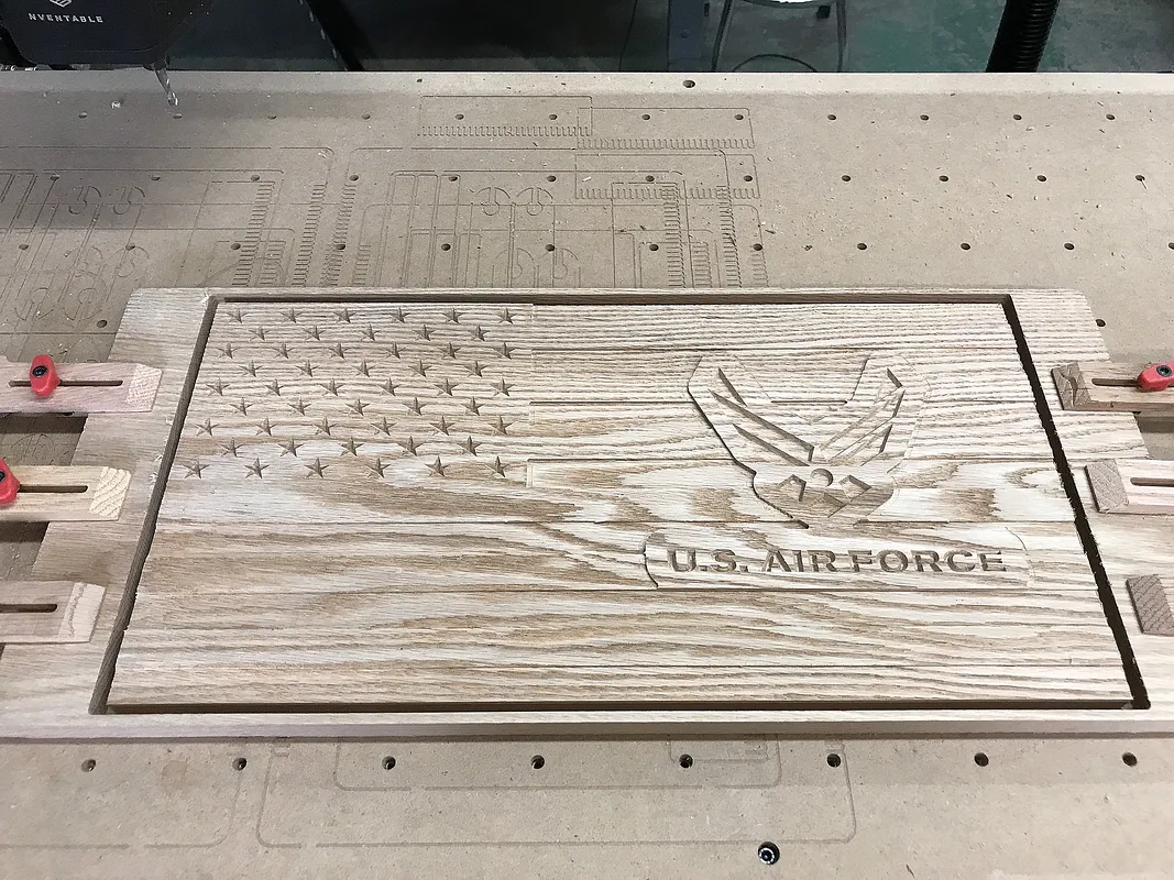 I made this flag for a gift, not to sell. It is broken down into multiple workpieces to optimize carving time. Requires z-probe and homing switches for accuracy. Each workpieces has notes on how to carve the project. The project uses X-Carve Pro Cut Settings, please adjust for your machine.