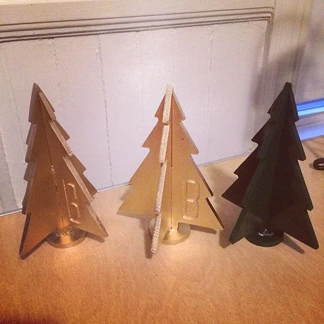 After you have sanded, you can assemble the tree and secure to the stand using wood glue. I chose to assemble the tree and then spray paint. My wife wanted gold and my preschooler could not imagine painting a tree any color other than green.