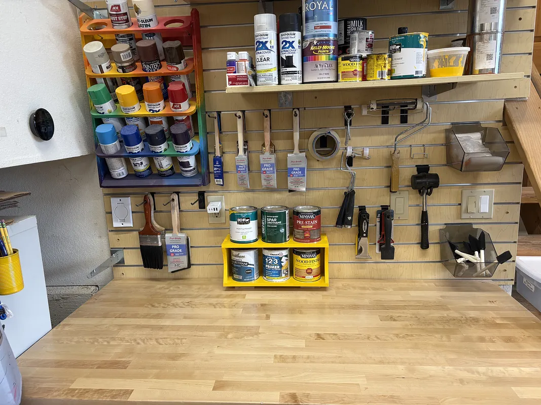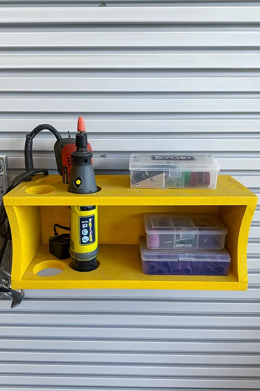 A set of CNC-cut tool organizers designed to work together as a clean, modular shop storage system. Includes racks for Flue Bottles, Paint Cans, Caulk Tubes, and Dremel Tools
