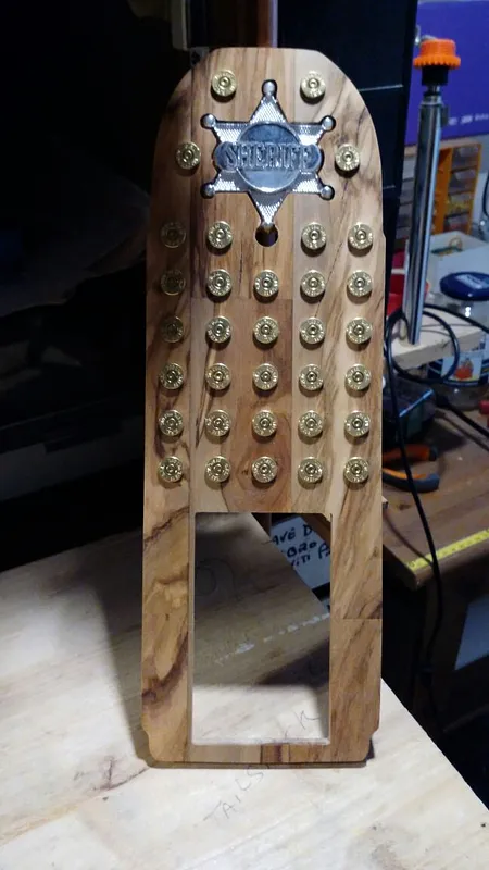 Upward theres the space to fit the sheriff star, and the holes can hold 33 bullets (0.38) used as life points. I hope you like!