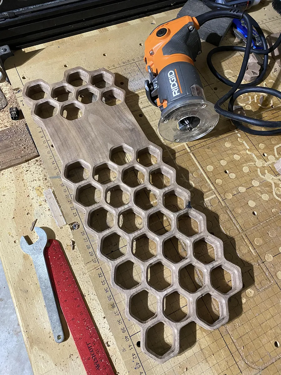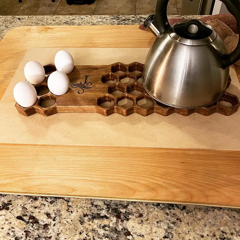 If you choose lumber that is less than 7 inches wide, you may need to resize the design. This will still look nice, but you may lose the egg holding feature that it was designed for, also consider a smaller bit if you go significantly smaller. I used a 1/8" spiral upcut bit.
