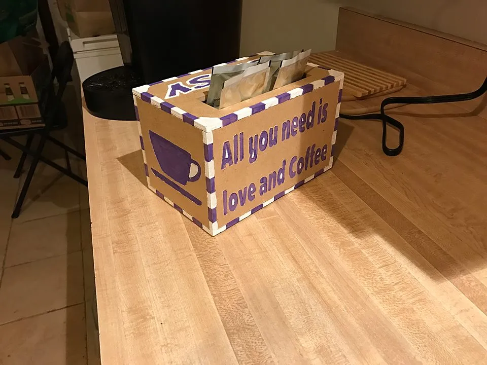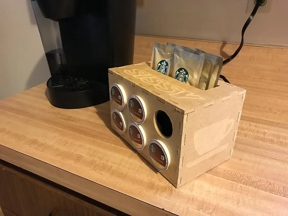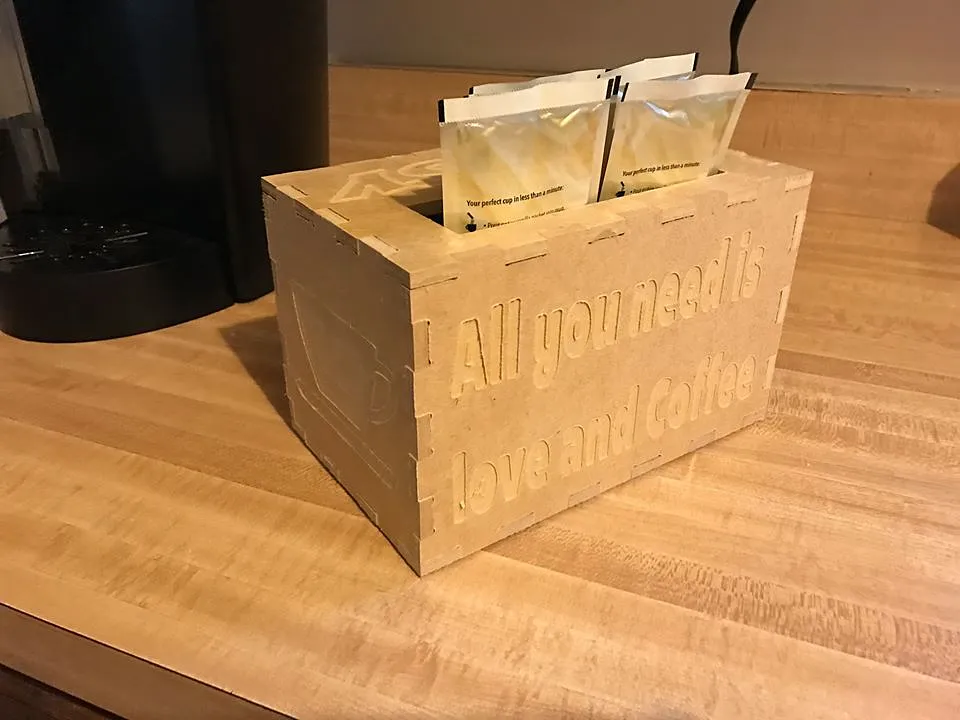A box I made to hold 6 Kcup and the flavor packets. Used a 1/8" mill for all cuts. Added felt feet to the bottom. This was a gift for the wife, she loves it.