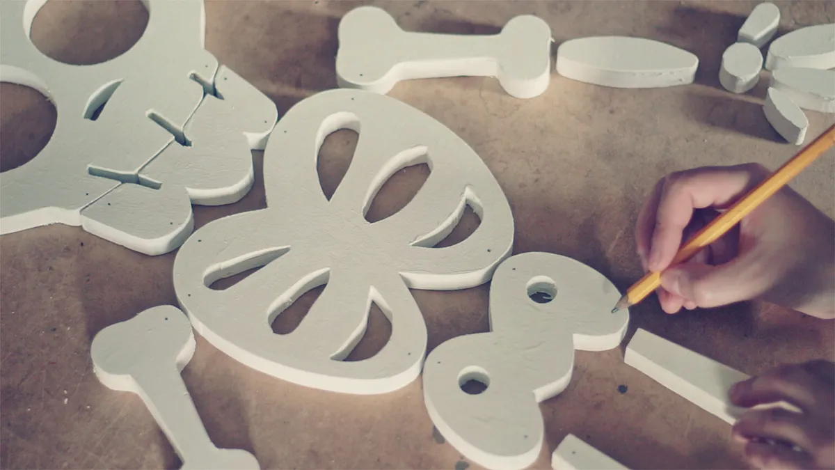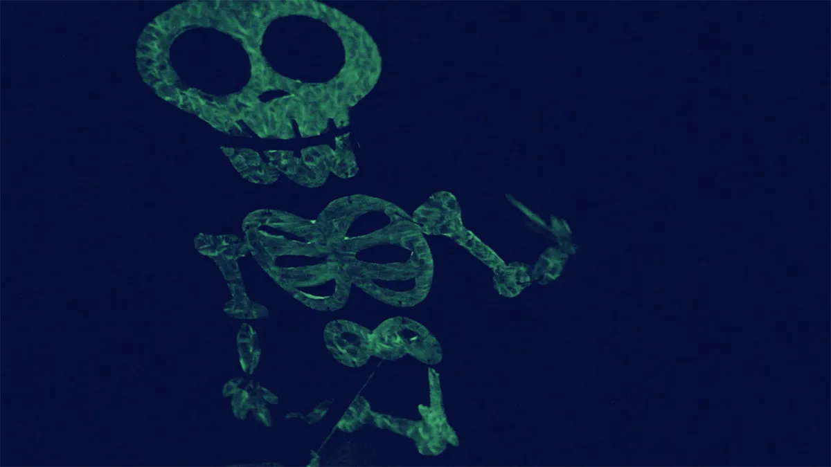 To give this specific glowing effect to your skeleton, you need to find a glowing paint already made or you can mix a tiny amount of phosphorescent powder with a matt acrylic medium (you can find those in an art supplies store). Turn the lights off and see the glowing effect while mixing and painting!