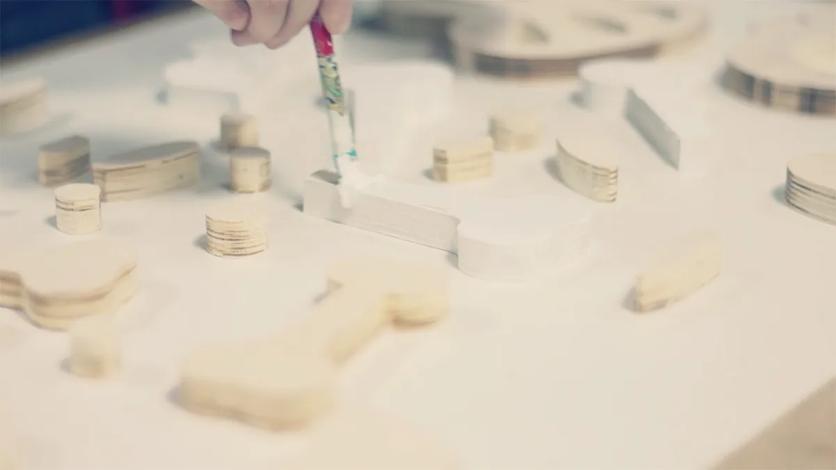 The pieces will come a bit rough straight from our carving so it's important to sand them smooth and break the sharp edges. You can skip the primer painting step but I think it looks great to get this little buddy covered in white. I used a wood acrylic primer.
